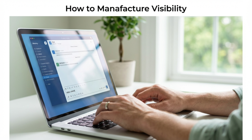 Since you cannot rely on the quality of your work to speak for itself, you must become your own public relations department. You need to create artificial visibility that mimics the organic interactions of the office.