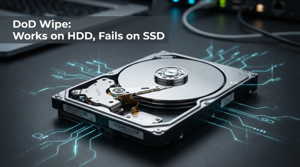 Can I use a DoD wipe on my SSD? You can run it, but it won’t reliably erase all data on an SSD. Wear-leveling means the overwrite tool can’t reach every sector. Use the drive’s native Secure Erase command instead, or physically destroy it if the data is sensitive.