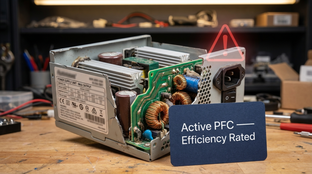 Here’s the core issue. Most desktop power supplies made in roughly the past decade include Active Power Factor Correction (Active PFC). This is a circuit designed to improve efficiency and reduce the harmonic distortion the PSU draws from the wall. Energy Star and 80 Plus certification requirements have pushed Active PFC into nearly every efficiency-rated power supply on the market.