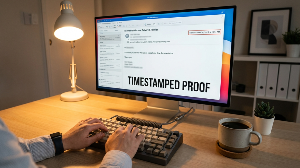 I started implementing what I call the Digital Breadcrumb Rule. Whenever I have a breakthrough or finish a draft, I send a “Status Update” email to the relevant parties before the formal presentation.