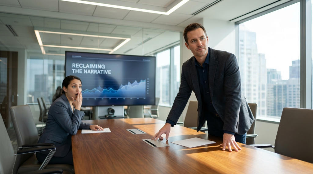 The most dangerous time for credit theft is during a live briefing. When a coworker says “I did X,” and you know you did it, your heart rate spikes. Most people either stay silent (like I did with Sarah) or they get aggressive and say, “Actually, I did that.” Both are mistakes. Aggression makes you look like a difficult team player.