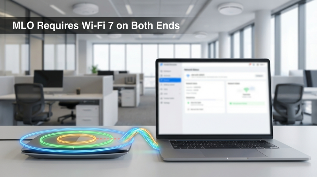 Here’s the catch: MLO only works if your client device also supports Wi-Fi 7 and MLO specifically. Your router cannot hand MLO to a laptop running a Wi-Fi 6E card. It falls back to standard single-band operation, just like it would on any previous generation.